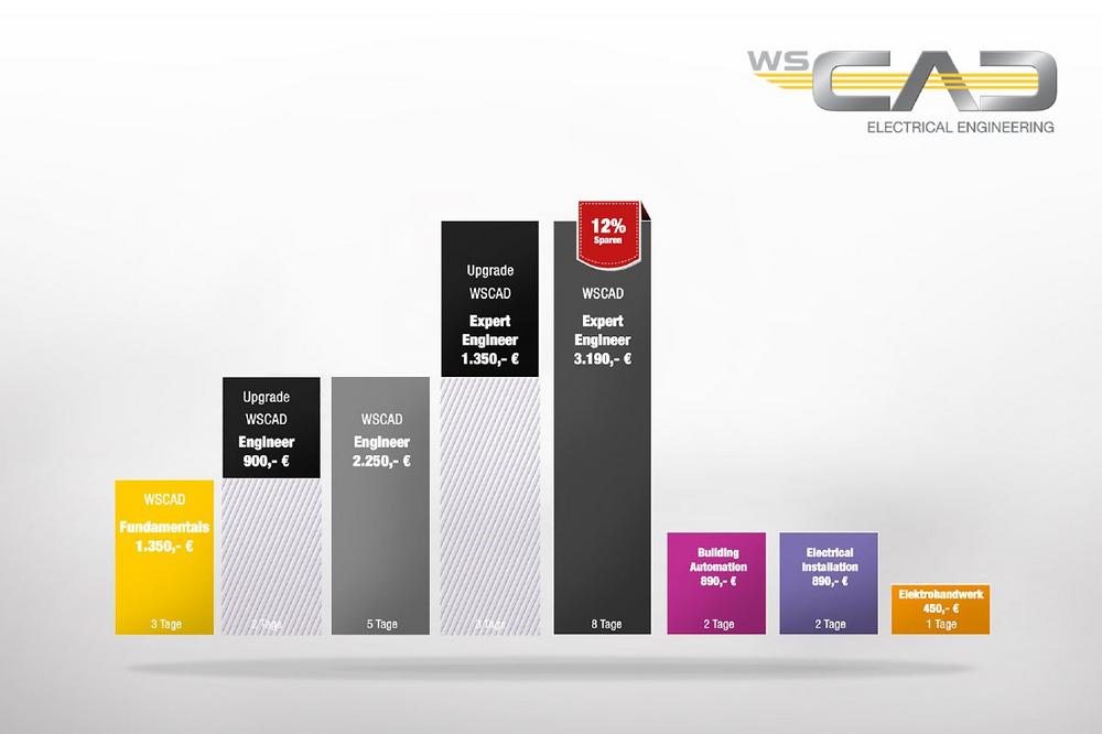 ‚WSCAD Engineer‘ vermittelt beispielsweise Maschinen-, Anlagen- und Schaltanlagenbauern in nur fünf Tagen exakt das Wissen, das sie für ihren Job benötigen. Nicht mehr und nicht weniger. „Das spart Zeit, ist finanziell günstiger und niemand wird mit Lernstoff überfrachtet, den er später gar nicht braucht,“ kommentiert Jürgen Panhölzl. Das umfassende Komplett-Training ‚WSCAD Expert Engineer‘ ist mit acht Tagen für Anlagen-, Maschinen- und Schaltschrankbauer konzipiert, die Neuplanungen von elektrotechnischen Anlagen inklusive Dokumentation und den Möglichkeiten zur Automatisierung von Engineering-Abläufen realisieren wollen. ‚Upgrade Expert Engineer‘ schließt in drei Tagen die Lücke zwischen ‚WSCAD Engineer‘ und ‚WSCAD Expert Engineer‘.