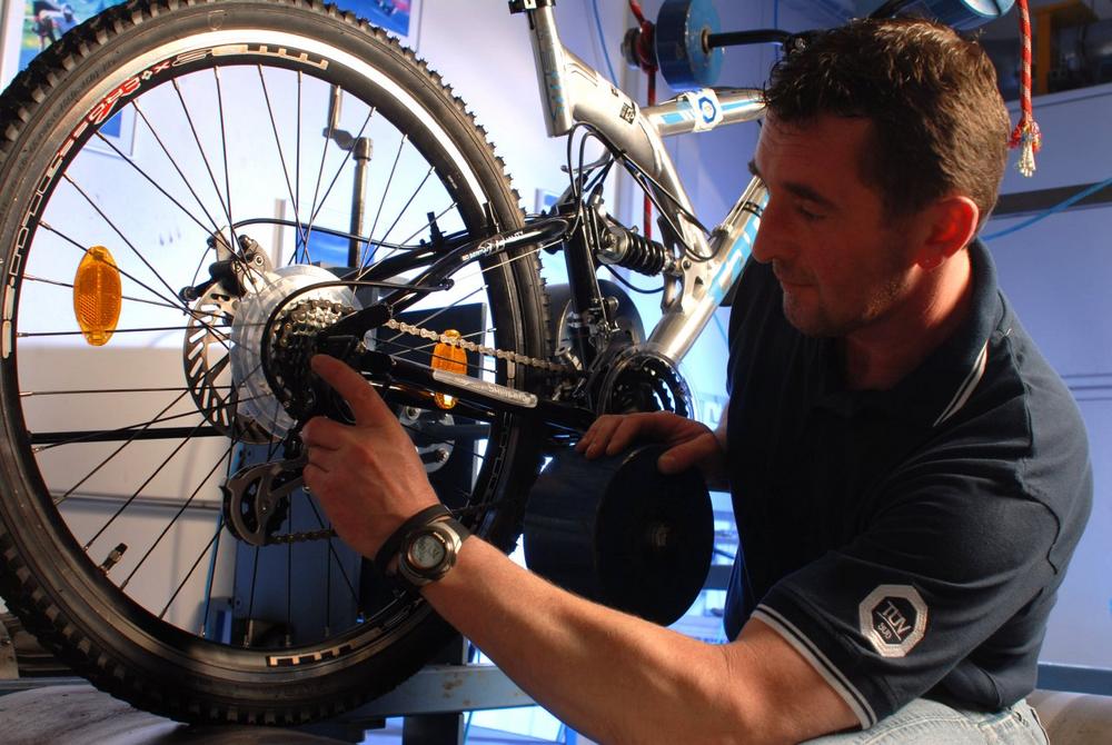 Bremsen: Es gibt verschiedene Arten von Bremsen: Felgen-, Scheiben- und Nabenbremsen. „Die Felgenbremse hat den Vorteil, dass sie sehr leicht und einfach zu warten ist“, erklärt TÜV SÜD-Experte Lex. Dagegen ist die Scheibenbremse besonders praktisch, weil sie nur wenig Handkraft erfordert, um zu bremsen. Nutzt man ein Rad mit Felgenbremsen, ist bei längeren Bergabfahrten Vorsicht angesagt, da sich die Bremsen dann schnell erhitzen können. Es ist ratsam, Bremsen regelmäßig warten zu lassen. Das gilt vor allem für hydraulische Bremsen, da sie technisch anspruchsvoller sind. Um ein gutes Gefühl für verschiedene Bremswirkungen zu bekommen, ist es sinnvoll, beim Fahrradkauf verschiedene Optionen zu testen.