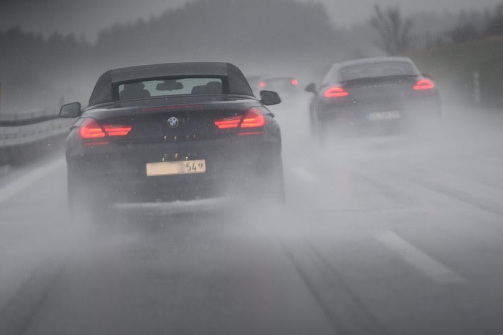 Abstand: Werden Straßen plötzlich nass, ist es wichtig, den Abstand zu den anderen Verkehrsteilnehmern zu vergrößern. Dazu aber auf keinen Fall hektisch lenken oder bremsen. Das gilt besonders auf Autobahnen. Fängt es plötzlich an, stark zu regnen, Scheibenwischer auf höchste Stufe, Fuß vom Gas, behutsam die Geschwindigkeit verringern, Verkehr beobachten und Ruhe bewahren. Nach dem Verzögern nicht vergessen: Linke Spur verlassen!