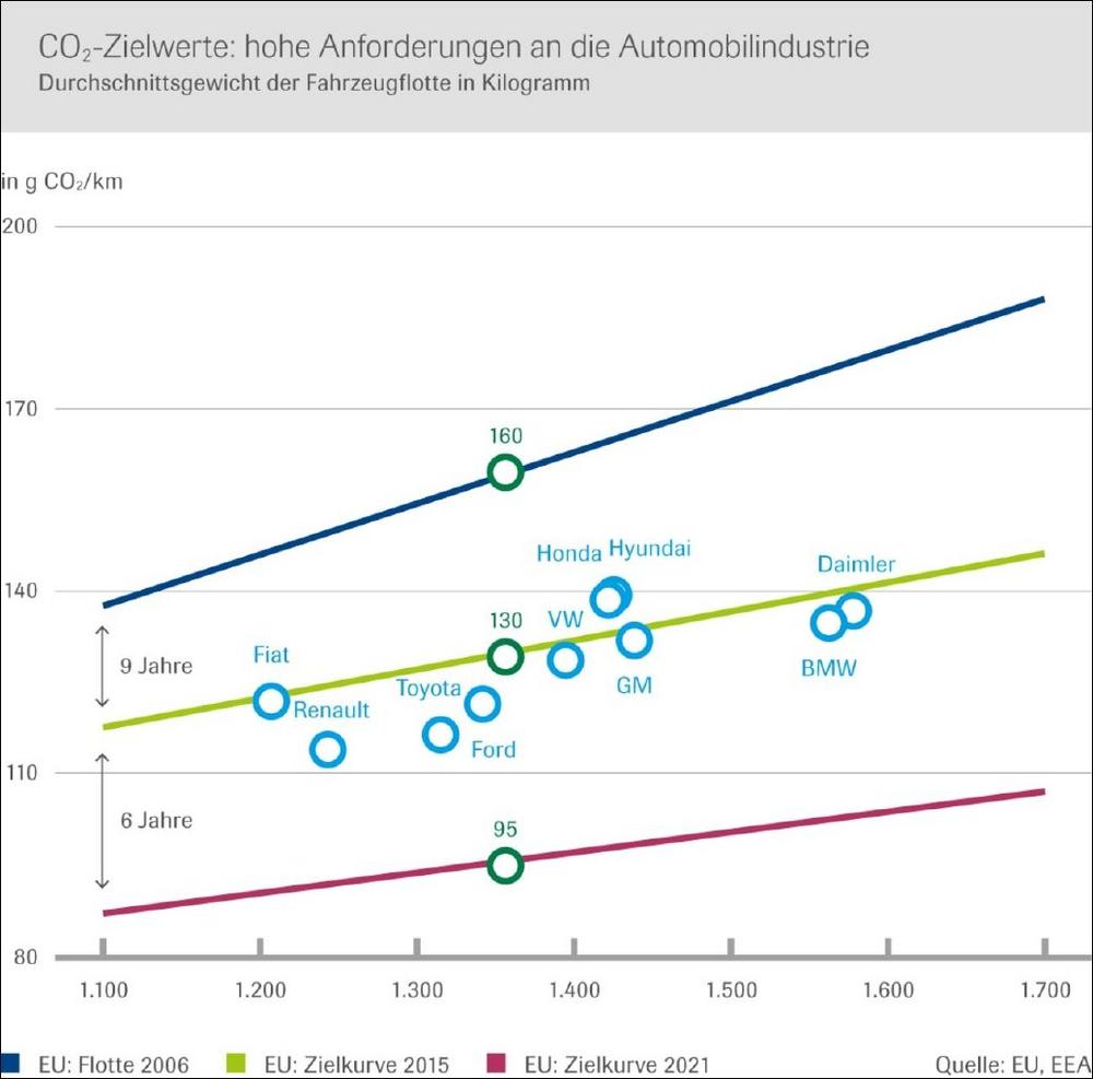 Es ist paradox: Mit ihren Anstrengungen, den Kraftstoffverbrauch und damit den CO2-Ausstoß ihrer Produkte zu senken, war die Automobilindustrie bislang durchaus erfolgreich. Seit 2008 sank der Durchschnittswert der deutschen Neuwagenflotte von 170 auf 127 Gramm pro Kilometer. Doch dieser Trend ist gebrochen. In den ersten sechs Monaten stieg der Flottenwert erstmals seit Jahren wieder an, wenn auch nur leicht um 0,6 Gramm. Vor diesem Hintergrund dürfte es für die Industrie schwer werden, die nächste Stufe der CO2-Gesetzgebung zu erreichen.