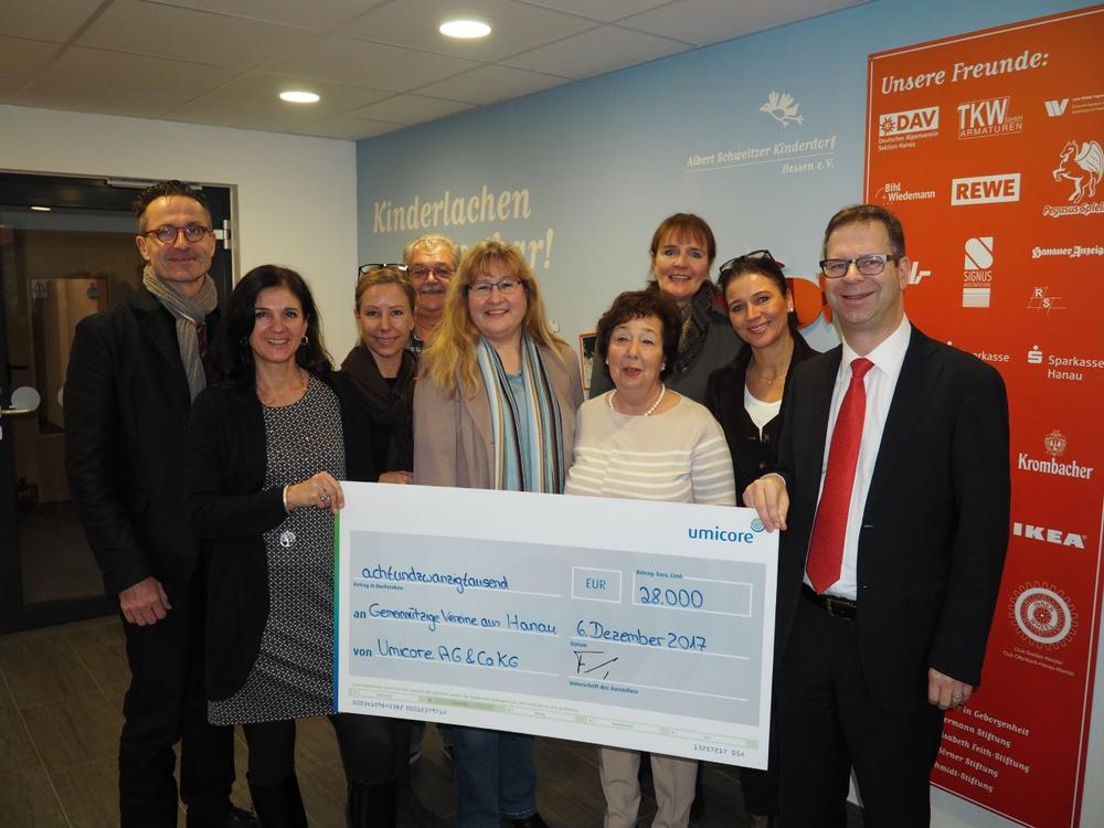 Umicore unterstützt bereits seit acht Jahren das Albert-Schweitzer-Kinderdorf in Hanau. Die Weihnachtsspende des Unternehmens kommt seitdem der Multifamilientherapie zu Gute. Die Therapie richtet sich an Familien mit Kindern, die einen besonderen Erziehungsbedarf haben, und zielt auf die Verbesserung ihrer Entwicklungsbedingungen durch gegenseitige Unterstützung und Rückmeldungen der Familien untereinander ab. „Bei Angeboten wie der Multifamilientherapie sind wir auf Spenden angewiesen und von daher sehr dankbar für die Unterstützung durch Umicore, die uns hilft, das Konzept aufrecht zu erhalten“, erläutert Katja Eisert, Einrichtungsleiterin, bei der Spendenübergabe.