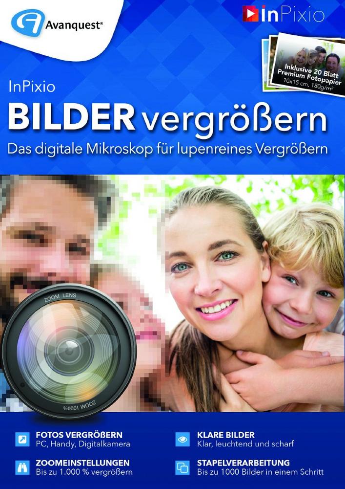 Mit „Bilder vergrößern“ kann man ganze Bilder oder auch nur einzelne Bildteile vergrößern – und das ohne Qualitätsverlust! Durch die ultrastarke Zoomfunktion mit bis zu 1.000-prozentiger Vergrößerung erhält der Benutzer eine mikroskopisch präzise Vergrößerung seiner Lieblingsbilder! Durch das einfache Einstellen von Bildschärfe, Kontrast und Filmkorn macht dieses Programm ein für alle Mal Schluss mit pixeligen Bildern und gezackten Stufen und Linien. Und dank der Stapelverarbeitung, lassen sich so gleich tausende Bilder automatisch bearbeiten.