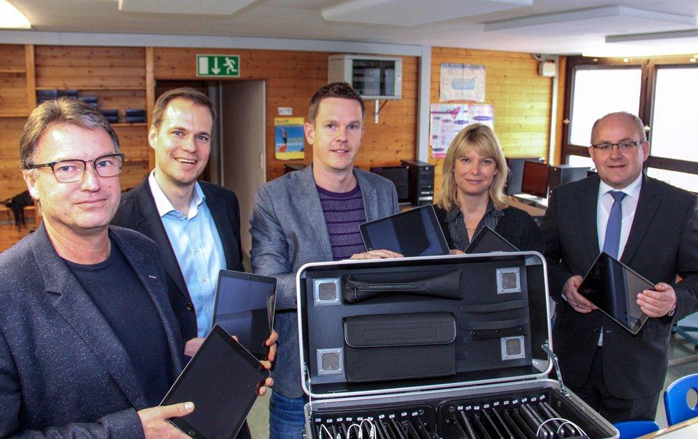 „Durch die großzügige USU-Spende eröffnen sich für uns neue Möglichkeiten, Unterrichtsthemen interaktiv und farbig zu gestalten. Wir haben uns für den Einsatz von iPads entschieden, da diese mit dem Einschalten sofort nutzbar sind, leicht und mobil in jedem Raum verwendet werden können und mit einer Akkulaufzeit von 10 Stunden auch dem Alltag in unserer Ganztagsschule gewachsen sind. Die Schüler können auf eine Vielzahl von Lern-Apps und -Videos zugreifen, im Internet recherchieren und eigene Inhalte erstellen. Das iPad dient aber auch als Kamera, Taschenrechner oder Diktiergerät. Es lassen sich leicht Lerngruppen bilden oder man kann sich zu fächerübergreifenden Themen austauschen“, freut sich Eberhard Schober, Rektor der Hanfbachschule.