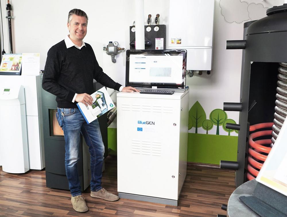 Der Bluegen ist ein stromoptimiertes Brennstoffzellen-System, das günstiges Erdgas in wertvollen Strom umwandelt. Bei einer konstanten Ausgangsleistung von 1,5 kW lassen sich mit dem Bluegen ca. 13.000 Kilowattstunden Strom im Jahr kostengünstig produzieren und bringen so ein Stück Unabhängigkeit – und das frei von meteorologischen Schwankungen. Damit stellt der Bluegen gerade für solarkompetente Fachhandwerker, aber auch für alle anderen, die offen sind für neue Lösungen, eine lohnenswerte Geschäftserweiterung dar. Die vielfältigen Kombinationsmöglichkeiten des Bluegen mit anderen Energiesystemen sorgen dafür, dass dieser universell einsetzbar ist, beispielsweise auch als Beistellgerät einer bereits bestehenden Heizungsanlage.