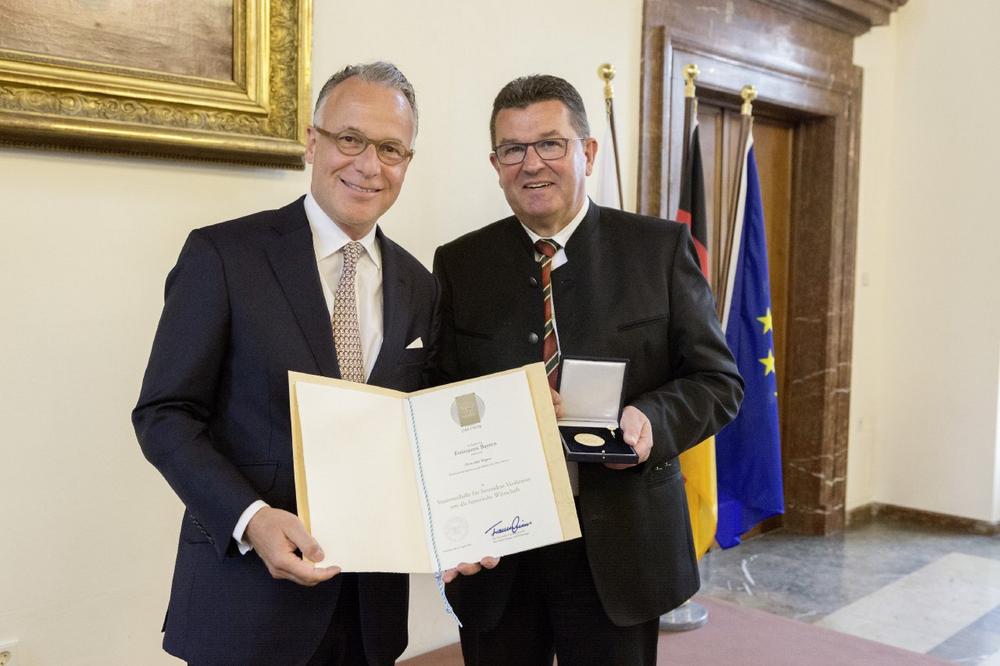 Im Rahmen eines feierlichen Staatsakts im Ludwig-Erhard-Festsaal des Bayerischen Wirtschaftsministeriums in München ehrte Franz Josef Pschierer dieses Jahr 16 Unternehmerpersönlichkeiten aus ganz Bayern für deren Engagement und vorbildliches unternehmerisches Handeln mit der höchsten, persönlichen Auszeichnung, die das bayerische Wirtschaftsministerium zu vergeben hat.