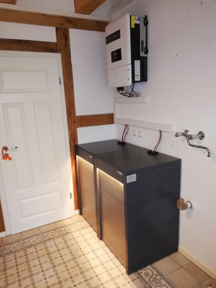 2018 hat sich Frau Müller entschlossen ein Elektroauto anzuschaffen. Das sollte ganz im Sinne der Erneuerbaren Energien natürlich auch mit eigenem Sonnenstrom geladen werden. Da Frau Müller berufstätig und tagsüber nicht zu Hause ist, war klar, dass der Sonnenstrom fürs Elektroauto tagsüber gesammelt werden musste und erst nach Feierabend in Frau Müllers neues E-Mobil umgelagert werden könnte. Dazu war der 2017 installierte CrystalTower zu klein. Vergangene Woche wurde deshalb ein 17,3er CrystalTower mit gut der doppelten Kapazität, dreiphasig und mit Notstromfunktion installiert. In Ortsrandlage von Bremen gibt es immer mal wieder Stromausfälle, dann ist es schön, wenn im Haus die Lichter nicht ausgehen.