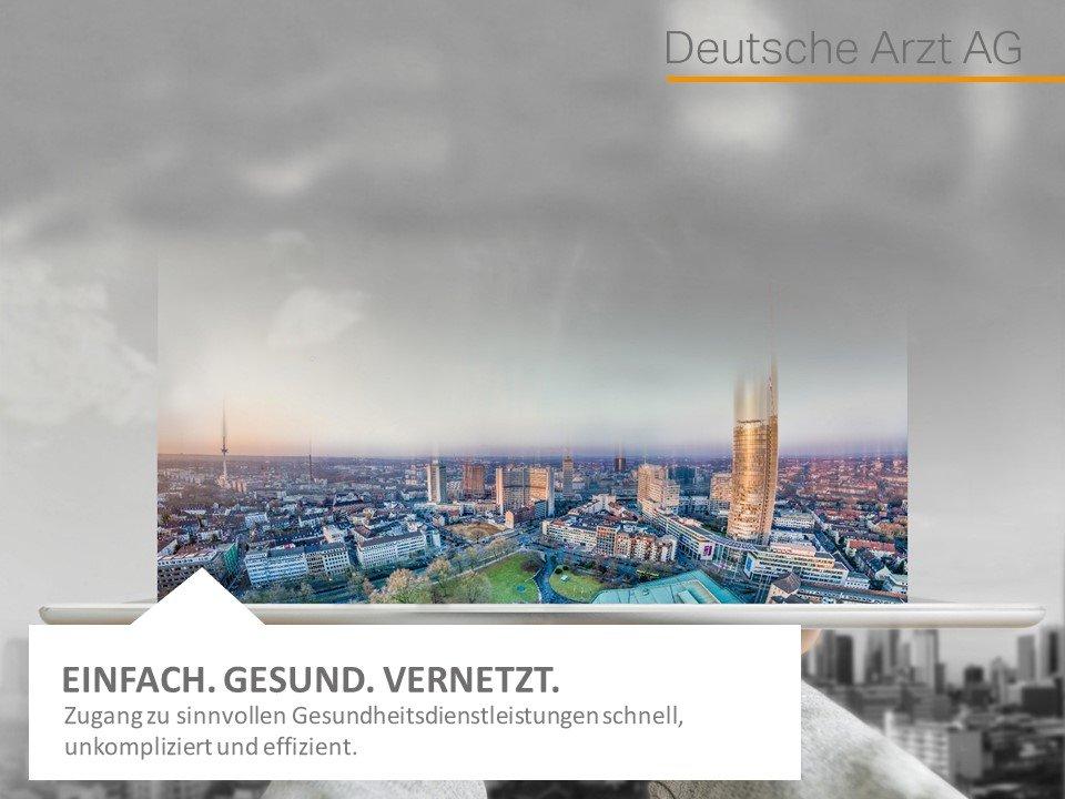 Die Deutsche Arzt AG vernetzt als einer der ersten Leistungsanbieter in Deutschland das Gesundheitswesen mithilfe digitaler Lösungen. Dazu zählen die online-Therapie, eine online-Videosprechstunde, die digitale Gesundheitsakte und direkt abrufbare Gesundheitsleistungen im Rahmen der betrieblichen Gesundheitsförderung. Damit gestaltet die Deutsche Arzt AG einen neuen innovativen Zugang zu Gesundheitsleistungen – schneller, unkomplizierter und effizienter als das im heutigen Gesundheitssystem der Fall ist.