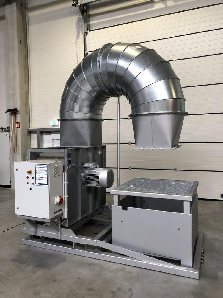 Mit einem FU-geregelten Radialventilator schafft diese Luftdusche einen homogenen Luftaustritt von bis zu 75.000 m3/h mit einer regelbaren Einströmungsgeschwindigkeit zwischen 8-40 m/s. Die Anströmungsrichtung kann individuell eingestellt werden. Die Anlage ist ausgelegt für die Abschreckmedien Luft und Luft/Wassernebel.