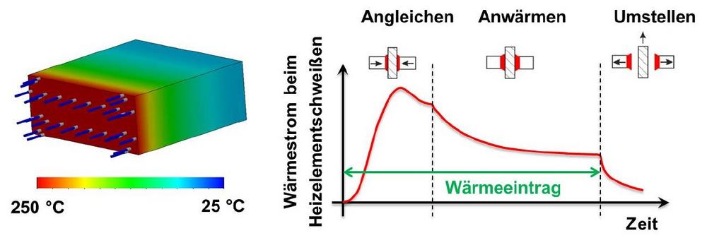 Das Heizelementschweißen ist eine universell einsetzbare, hoch automatisierbare und wirtschaftliche Technologie zum Fügen von Kunststoffen. Es wird vor allem für Formteile und Halbzeuge eingesetzt und erreicht typischerweise eine hohe Nahtqualität. Auf Grund seiner Zuverlässigkeit ist das Heizelementschweißen von zentraler Bedeutung für die Kunststoffindustrie. Die aktuell angewandte Prozesskontrolle beim Heizelementschweißen umfasst Druck- und Wegüberwachung in der Bewegungsführung sowie im Heizelement integrierte Temperaturfühler. Mit diesen Verfahren kann der Energieaustausch zwischen Kunststoffbauteil und Heizelement, der den Fügeprozess entscheidend beeinflusst, jedoch nicht direkt überwacht werden. „Entsprechend müssen derzeit für die Prozessauslegung aufwendige Vorversuche und Berechnungen angestellt werden. Dieser Prozess soll nun durch den Einsatz von Wärmestromsensoren vereinfacht werden“, erläutert SKZ-Wissenschaftler Dr. Christian Balzer.