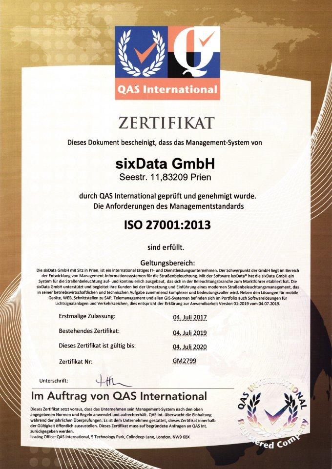Die ISO 27001 Zertifizierung ist ein Merkmal dafür, dass Unternehmen einen großen Wert auf IT-Sicherheit legen. Bereits seit dem 04.07.2017 ist die sixData GmbH offiziell und ununterbrochen ISO 27001 zertifiziert. Die erfolgreiche und kontinuierliche Zertifizierung ist auch ein Qualitätsmerkmal für Kunden, Partner und Lieferanten. Durch die Zertifizierung stellt sixData sicher, dass ihre Sicherheitsstandards auf allgemein anerkannte, einheitliche Methoden und Best Practices basieren. Das erforderliche Audit, welches für die Fortführung der ISO Zertifizierung vorausgesetzt wird, wurde auch dieses Jahr erfolgreich bewältigt und so bleibt die ISO 27001 Zertifizierung aufrechterhalten. Dieser Schritt war für die sixData GmbH selbstverständlich, denn das tägliches Geschäft sind Kunden-Daten und diese müssen so gut wie möglich geschützt werden.
