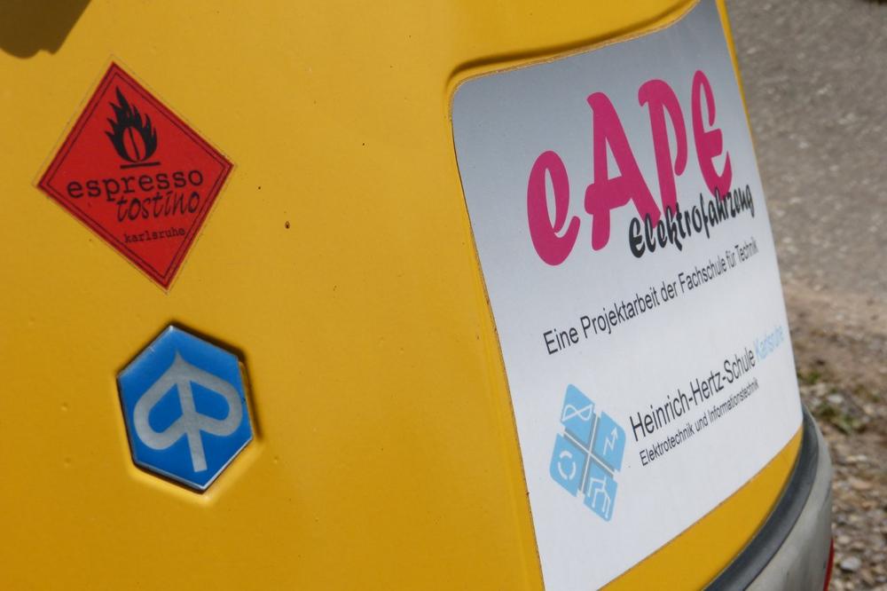Als Projekt machten sich die Berufsschüler zur Aufgabe, eine Piaggio Ape 50 zu einem Elektro-Kleinlaster umzubauen. Historisch betrachtet stammt dieses Modell (Ape zu Deutsch Biene) ursprünglich aus Italien und erreichte in Fachkreisen seit einiger Zeit Kultstatus. Heute werden Piaggios oftmals auf Messen als Exponat verwendet, doch die angehenden Techniker aus Karlsruhe holen die Piaggio wieder auf die Straße zurück – und das als Elektrofahrzeug.