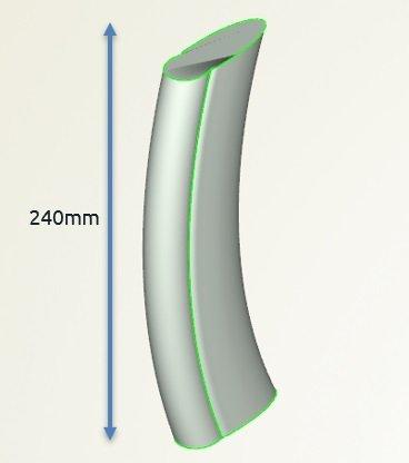 Einige der verfügbaren Parameter wurden zur Optimierung der Felgenform ausgewählt und deren Grenzen definiert. Die Parameter steuerten insbesondere die Form der Kurve an der Hinterkante (bezogen auf den vorwärts gerichteten Radabschnitt), die Breite der Felge (wobei der Reifen auf 25 mm Durchmesser festgelegt ist) und die Länge des Teils der Felge, der gerade verläuft, bevor die Kurve beginnt.