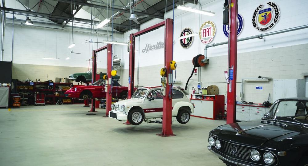 Die Officine Classiche wurden 2015 in der früheren Zentrale von Abarth in der Via Plava in Turin im ehemaligen Fabrikgebäude Nummer 83 des Werks Mirafiori eröffnet. FCA Heritage bietet hier Reparatur-, Restaurierungs- und Zertifizierungsaktivitäten für historische Fahrzeuge der italienischen Marken der Gruppe an. Die Spezialisten der Officine Classiche betreuen dabei nicht nur die umfangreiche Sammlung von FCA Heritage, sondern stehen auch privaten Sammlern beziehungsweise Besitzern von Oldtimern zur Verfügung. Die Verwendung von originalen Produktionsdaten und technischen Zeichnungen, aufbewahrt im historischen Unternehmensarchiv, garantieren zusammen mit dem unerschöpflichen Erfahrungsschatz der Techniker hohe Präzision bei Arbeiten an allen historischen Fahrzeugmodellen von Abarth, Alfa Romeo, Fiat und Lancia.