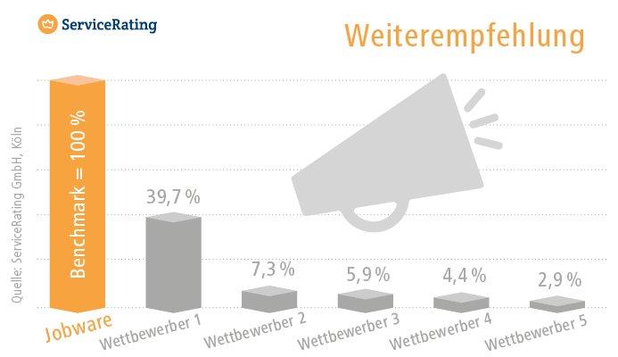 Servicequalität, Kundenzufriedenheit und herausragende Recruiting-Erfolge sind der Maßstab, an dem sich Jobbörsen messen müssen. Mit dem Ziel einer aktuellen Bestandsaufnahme hat die ServiceRating GmbH aus Köln im Auftrag von Jobware eine Umfrage durchgeführt: Mehr als 850 Personalern wurde im Zeitraum vom 30.09.2020 bis 13.10.2020 die Gelegenheit gegeben, ihre Bewertung zu Stellenmärkten und Karrierenetzwerken zu teilen.