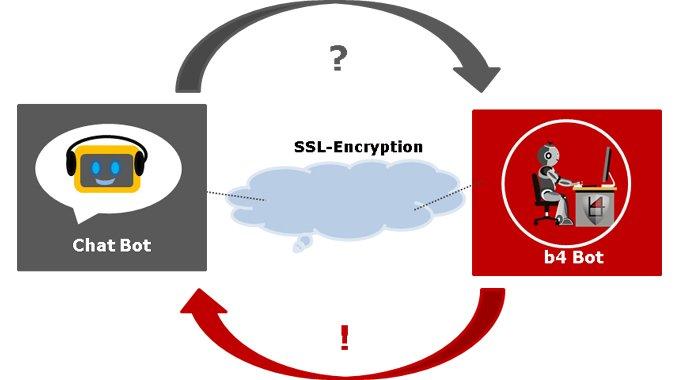 Viele Prozesse können theoretisch sehr gut automatisiert werden, beinhalten jedoch kommunikative Elemente, die für normale RPA-Technologien nicht zu verarbeiten sind. So kann unser b4 Bot zum Beispiel eine große Datenbank aus strukturierten Daten aufbauen und katalogisieren, ist aber nicht in der Lage, die gesammelten Informationen abzurufen, wenn die Anfrage nicht genauso klar strukturiert ist. Das allerdings ist bei Kundenfragen selten der Fall, da diese umgangssprachlich erfolgen und nicht einem vorab festgelegten semantischen Schema folgen. Hier kommt der Chatbot zum Tragen. Er kann diese umgangssprachlichen Anfragen verarbeiten und so umwandeln, dass unser b4 Bot sie versteht. Umgekehrt liefert er dann dem Chatbot die Daten für eine effektive Antwort.