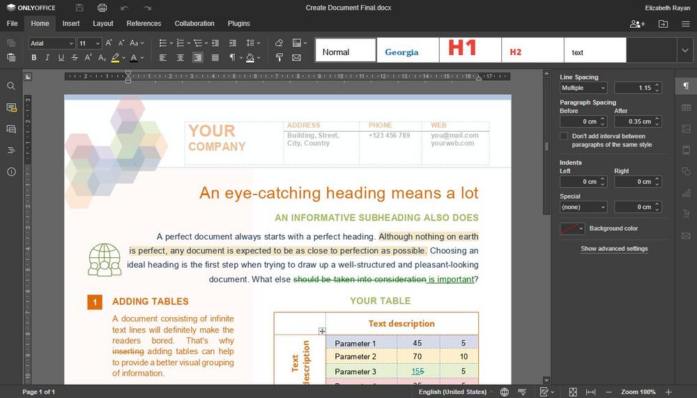 ONLYOFFICE bietet Usern darüber hinaus umfassende Online-Funktionen: Zugriff von jedem Ort und von jedem Gerät aus, schnellen Dateiaustausch und Kollaboration in Echtzeit.