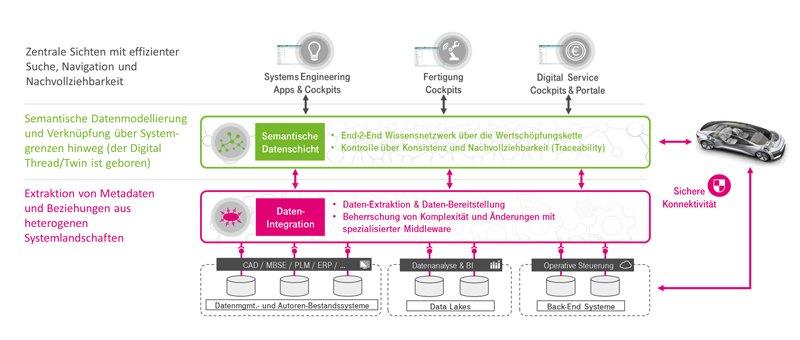 Angefangen beim smarten Engineering mit Hilfe vernetzter Daten, über das digitale Manufacturing bis hin zu einer kontextualisierten Datenbasis für KI-Anwendungen, machen T-Systems und CONWEAVER die Daten Fit für die Mobilität von Morgen.