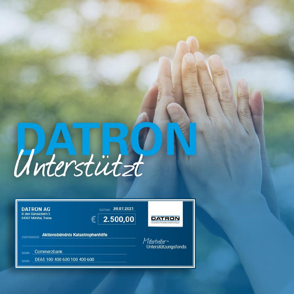 Eigentlich sollen unverschuldet in Not geratene DATRON Mitarbeiterinnen und Mitarbeiter Nutznießer des DATRON Mitarbeiter-Unterstützungsfonds sein. Da in der letzten Zeit intern aber kaum Mittel für eine unbürokratische Finanzhilfe abgerufen wurden, hat man sich im Gremium aus DATRON Mitarbeitenden, das die Zuteilung von Leistungen betreut, entschieden, kurzfristig €2.500 an Bedürftige außerhalb der Organisation zu spenden. Den Opfern der Hochwasserkatastrophe im Westen von Deutschland soll über die Spendenplattform des „Aktionsbündnis Katastrophenhilfe“ schnell finanzielle Unterstützung zuteilwerden.