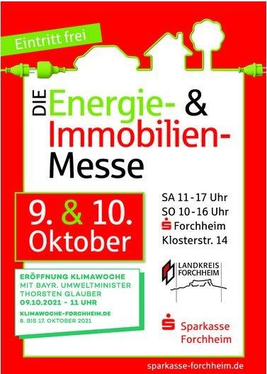 Die Sparkasse Forchheim und das Landratsamt Forchheim veranstalten zum fünften Mal gemeinsam die Energie- und Immobilienmesse im Landkreis Forchheim. Die Eröffnung der Energie- und Immobilienmesse am 09.10. um 11 Uhr durch Bayerns Umwelt- und Verbraucherschutzminister Thorsten Glauber ist gleichzeitig der offizielle Auftakt zur Klimaaktionswoche 2021. Nach der offiziellen Eröffnung wird als besonderes Highlight u.a. eine Klima-Kochshow stattfinden, mit Gästen aus Politik und regionaler Lebensmittelerzeugung.
