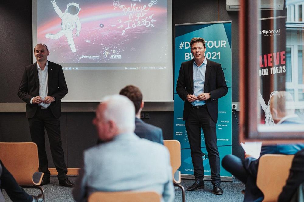 Eröffnet wurde der Tour-Stopp am Vorabend vom Rektor der Hochschule, Prof. Dr. Stephan Trahasch und dem Leiter von startUp.connect und Gastgeber Florian Appel. Mit einer Keynote zum Thema „Komplexitätsbeherrschung mittels Advanced Systems Engineering“ gab Dr. Florian Herrmann vom Fraunhofer IAO Einblicke in Gestaltung von innovativen Produkten und Dienstleistungen sowie deren Entstehungsprozess. Von der Stadt Offenburg erläuterte Dr. Marc Müller-Stoffels, Fachbereichsleiter Digitalisierung und IT, die Digitalisierung der Verwaltung und welche Herausforderungen dabei zu meistern sind. Im Anschluss war dann noch Gelegenheit, das Plug-In Labor ganz praktisch mit einem Durchlauf von der Bestellung im Online-Shop bis hin zum gefertigten und geprüften Produkt zu erleben.