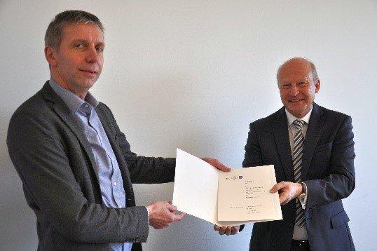 Der Präsident der TU Ilmenau, Prof. Kai-Uwe Sattler, hat Prof. Thomas Bachmann heute die Ernennungsurkunde zum Professor für Fahrzeugtechnik überreicht. Seine Expertise wird Prof. Bachmann ab dem neuen Jahr in die Kernkompetenzen des Innovationszentrums Fahrzeugtechnik und Antriebstechnik einbringen. Gleichzeitig wird er nach dem Ausscheiden seines Vorgängers Prof. Klaus Augsburg Leiter des entsprechenden Fachgebiets an der TU Ilmenau, das von „Kraftfahrzeugtechnik“ in „Fahrzeugtechnik“ umbenannt wurde. Neben der Forschung wird Prof. Bachmann sich auch intensiv in der Lehre einbringen und die Studentinnen und Studenten des Studiengangs Fahrzeugtechnik ausbilden. Nach seinem Maschinenbaustudium und einer vierjährigen Tätigkeit als wissenschaftlicher Mitarbeiter am Fachgebiet Fahrzeugtechnik der TU München ging Prof. Thomas Bachmann 1997 in die Industrie, wo er in der BMW Group zuletzt im Entwicklungsbereich Digital Car, Automated Driving, als Fahrzeugprojektleiter der Pilotflotte Vollautomatisiertes Fahren arbeitete.
