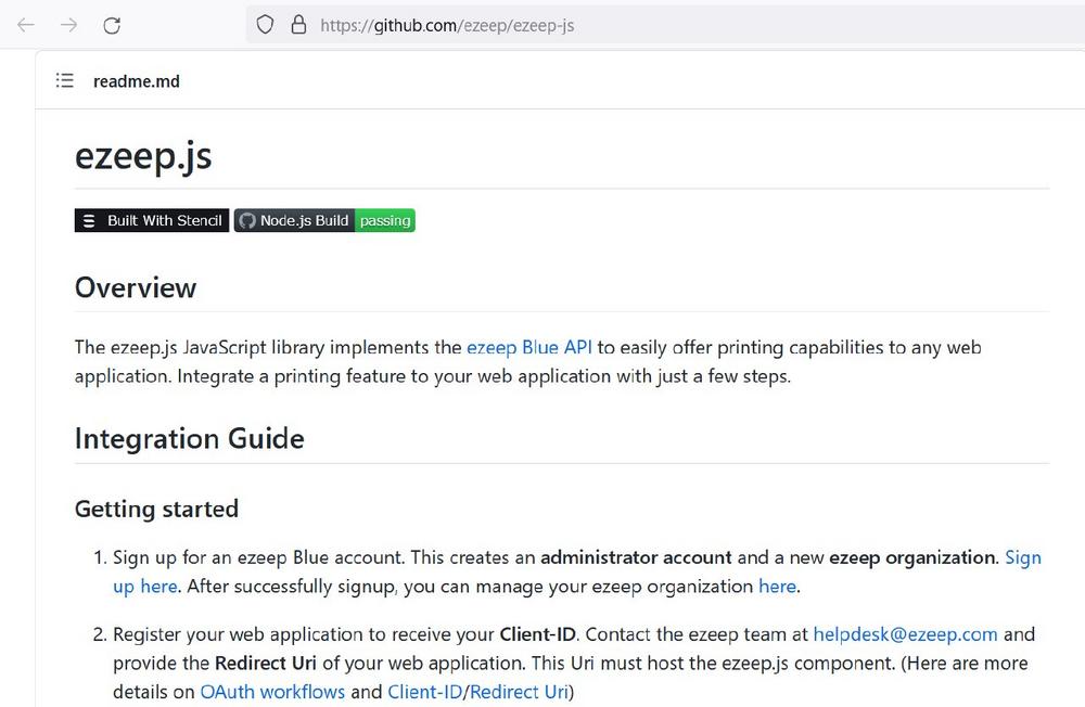 Während Entwickler weiterhin die Möglichkeit haben, die bereits verfügbare ezeep Blue API zu nutzen, profitieren sie mit ezeep.js von einer deutlich einfacheren und schnelleren Implementierung. Schritte, wie die Erstellung eines Druckdialogs oder die Verwaltung von Benutzerkonten sind nicht notwendig. Mit ezeep.js kann das Drucken Plug-and-Play implementiert werden. Entwickler von Webanwendungen, die Druckunterstützung benötigen, können viel Zeit sparen, indem sie einfach die JavaScript-Bibliothek, die auf derGitHub-Seite