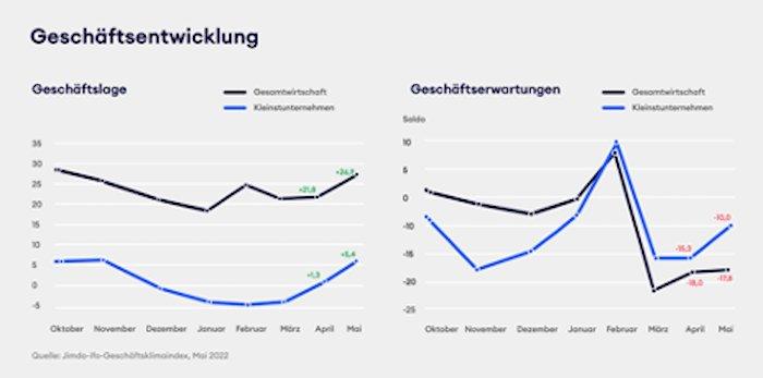 Auch Matthias Henze, CEO und Mitgründer von Jimdo, warnt vor zu viel Euphorie angesichts des verbesserten Geschäftsklimaindex: „Es freut mich zunächst wahnsinnig, dass sich die Solos nach dem ersten Kriegsschock als so überraschend widerstandsfähig und zuversichtlich erweisen. Das zeigt, was für eine Energie in diesem oft unterschätzten Sektor steckt. Sie wollen Anpacken!” Eine schnelle Erholung für die gebeutelten Kleinstunternehmen hält Henze dennoch für sehr unwahrscheinlich: „Steigende Preise, Lieferengpässe und sinkende Kaufkraft der Kund*innen, das sind schon für mittlere und große Unternehmen extreme Herausforderungen. Und bei den Kleinen stecken die Nachwehen von Corona noch tief in den Knochen. Ihre Geschäftslage ist weiterhin mäßig und sie holen den Abstand zur Gesamtwirtschaft seit Monaten nicht auf. Das lässt sich nicht schönreden.” Die Geschäftslage bei Kleinstunternehmen liegt bei 5,4 Punkten, bei der Gesamtwirtschaft sind es 26,9 Punkte.