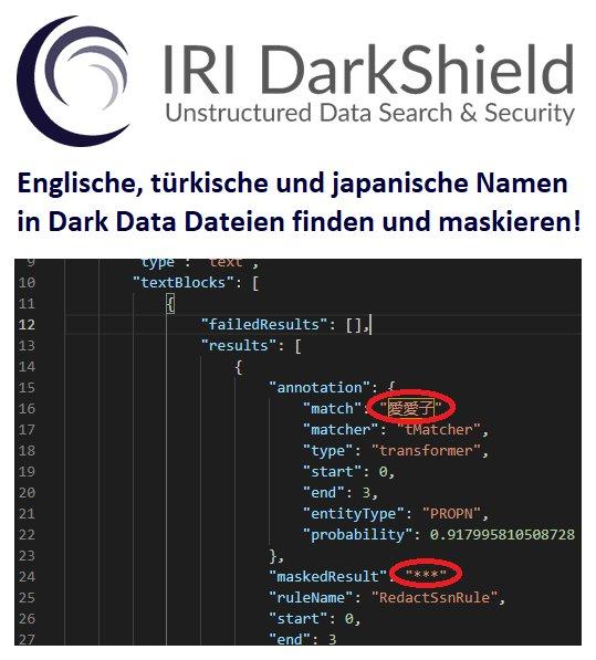 IRI DarkShield unterstützt bereits seit Jahren den Import und das weitere Training von OpenNLP-Modellen zum Auffinden und Maskieren von benannten Entitäten. Neu in der DarkShield RPC API 2022 ist jedoch die Unterstützung für moderne Tensorflow und PyTorch NER Modelle. Dies ist eine bedeutende Verbesserung gegenüber dem ersten Satz schneller, aber weniger NER-Modelle auf Basis von OpenNLP.