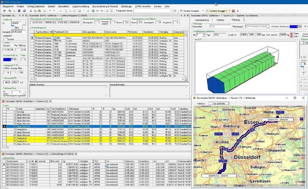 Das Ziel des Projektes war also, die bestehende Tourenplanungslösung von WITRON zu verbessern, wobei komplexe Transporttarife und verschiedene praxisrelevante Restriktionen berücksichtigt werden mussten. Zum Beispiel zählen zu den Restriktionen für die Tourenplanung mehrere Zeitfenster, Auftragssplitting und ein heterogener Fuhrpark, und für das Packproblem Restriktionen wie Stapelbarkeit und LIFO-Entladung. Zum Lösen des Packproblems werden ein bewährtes Beladeoptimierungstool von WITRON und ein vom Lehrstuhl entwickelter Packalgorithmus verwendet.