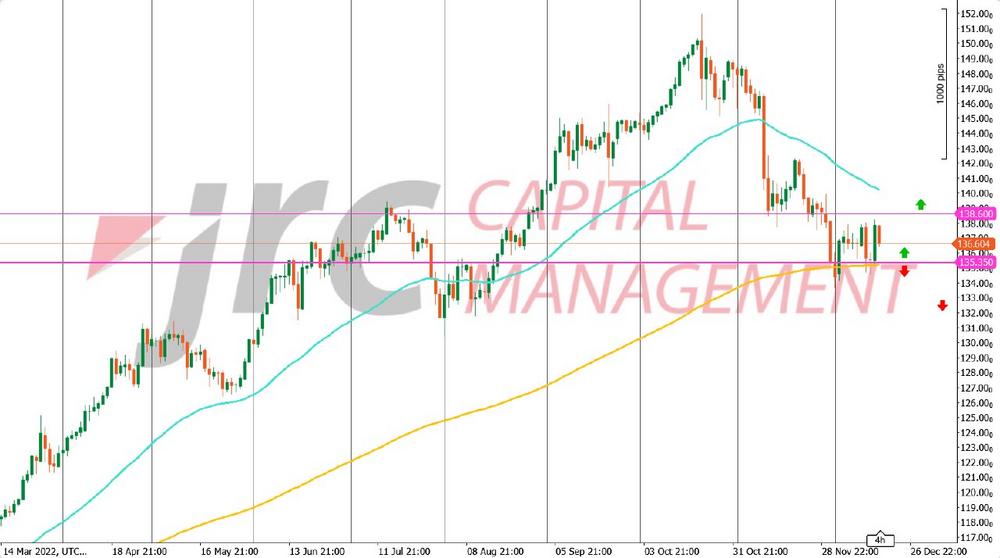 An der charttechnischen Situation im Tages-Chart hat sich in der aktuellen Woche wenig geändert. Im Bereich um 135,35 Yen hat sich eine kurzfristig relevante Horizontalunterstützung etabliert. Der nächste wichtige Widerstand befindet sich im Bereich von 138,60 Yen. Sollte sich der Kurs weiterhin über der Horizontalunterstützung aufhalten und diese respektieren, kann dies als bullishes Signal interpretiert werden. Sollte diese jedoch durchbrochen werden, könnten wir eine Abwärtsbewegung bis unter das letzte Tief Richtung 132 Yen beobachten. Andernfalls könnte der Kurs bis über den genannten Widerstand steigen. Sollte dieser durchbrochen werden, könnten wir einen weiteren Anstieg 141,50 Yen sehen, ansonsten könnte sich der Kurs weiterhin im Bereich von 136-137 Yen aufhalten.
