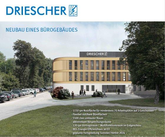 Die Fertigstellung des neuen Bürogebäudes auf dem Firmengelände von DRIESCHER ist bereits für Ende 2024 geplant. Aufgrund der politischen Vorgaben zum Ausbau der erneuerbaren Energien ergibt sich für DRIESCHER als Unternehmen der Elektrotechnik- und Energieverteilungsbranche ein großes Marktpotenzial, um die Nachfrage nach Produkten zum Ausbau der Strominfrastruktur bedienen zu können. DRIESCHER ist produktseitig bestens auf die Trends der Zukunft vorbereitet und schafft nun auch die Voraussetzungen, diese Herausforderungen zukünftig personell weiterhin bewältigen zu können.