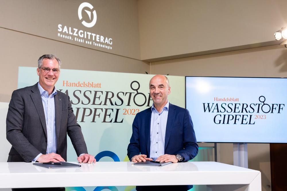 Der Oldenburger Energiedienstleister EWE und der Stahl- und Technologiekonzern Salzgitter AG beabsichtigen, beim Thema Wasserstoff zu kooperieren. Das gaben die Vorstandsvorsitzenden Stefan Dohler (EWE) und Gunnar Groebler (Salzgitter AG) am Donnerstag in Salzgitter bekannt – am Rande des Handelsblatt- Wasserstoffgipfels unterzeichneten sie die entsprechende Absichtserklärung.