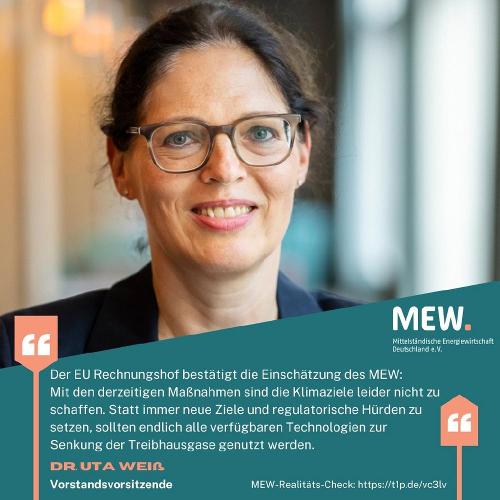 Dr. Uta Weiß stellt in diesem Zusammenhang fest: „Der europäische Rechnungshof bestätigt die Einschätzung des MEW: Mit den derzeitigen Maßnahmen sind die Klimaziele leider nicht zu schaffen. Der deutsche Energiemittelstand steht bereit und ist fest entschlossen, bei der Senkung der Treibhausgasemissionen mitzuwirken. Unsere Unternehmen investieren bereits in klimafreundliche Technologien, könnten aber weitaus mehr für die CO2-Senkung tun, wenn der politische Rahmen dies zuließe.“