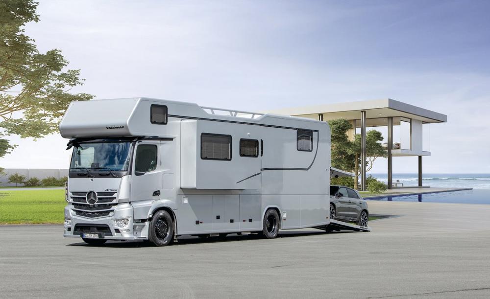 Exklusives Komfortmobil, modernste Vollausstattung, innovative Technik, Interieur bentART, PKW-Garage mit Plattform und‚ veloSLIDE‘Sicherheitsassistenzsysteme serienmäßig