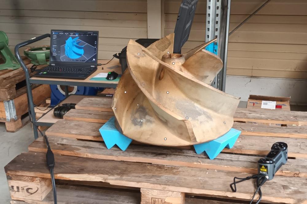 Für die Herstellung des dringend benötigten Ersatz-Laufrades wurde zuerst das schadhafte Teil gescannt und das resultierende Netzmodell mit Mesh2Surface für Solidworks in ein fertigungsrelevantes 3D Modell überführt.