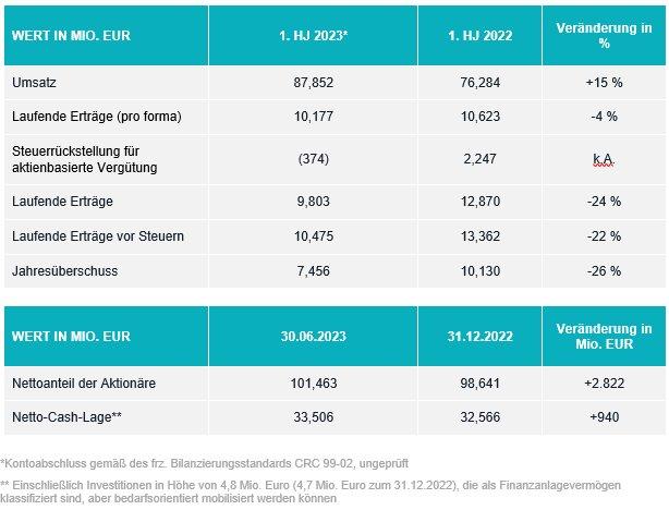 Unter Berücksichtigung eines stabilen effektiven Steuersatzes entspricht der Jahresüberschuss mit einem Gewinn von 7,5 Mio. Euro (8,5 % des Umsatzes) den laufenden Erträgen. Das sind 26 % weniger als im Vorjahreszeitraum.