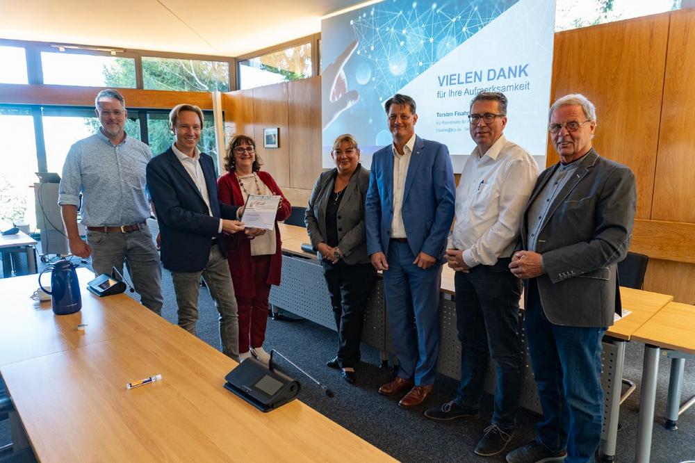 Der Projektabschlussbericht wurde am 26.09.2023 vom stellvertretenden Geschäftsleiter des Kommunalen Rechenzentrums Martin Kroeger und dem Leiter für Kommunalberatung Torsten Fisahn an Bürgermeisterin Anke Grotjohann übergeben. Mit den im Abschlussbericht empfohlenen zielgruppenspezifischen Qualifizierungsmaßnahmen zur digitalisierungsbezogenen Personalentwicklung (sogenannte Digitallots:innen und Digitalisierungsmanager:innen) wurde bereits begonnen und diese werden zunächst befristet bis März 2024 fortgesetzt. Im Bericht weitere konkret formulierte Empfehlungen zur Weiterentwicklung vorhandener technischer Kommunikationswege und -strukturen dienen der Verwaltungsführung als Grundlage und Unterstützung zur Entscheidungsfindung.