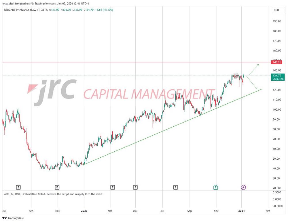 Gerade die neue Einführung des E-Rezeptes im Frühjahr könnte dem Unternehmen zu anhaltenden Marktanteilsgewinnen, steigenden Margen und auch dem Mittelzufluss durch rezeptfreie Medikamente verhelfen. Im vergangenen Jahr hatte sich der Redcare-Kurs in etwa verdreifacht, die Aktie befindet sich seit Ende 2022 in einem stabilen Aufwärtstrend.