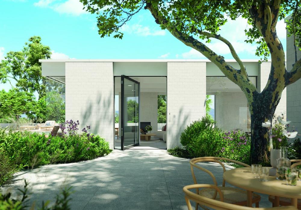 Der Eingangsbereich ist die Visitenkarte des Hauses. Deshalb braucht ein anspruchsvolles Gebäude auch eine repräsentative Haustür. Ein architektonisches Highlight setzen großformatige Pivot-Türen. Anders als herkömmliche Türen, deren Scharniere seitlich zur Wand angebracht sind, sind Pivot-Tür schwingend und rotieren entlang einer vertikalen Achse auf einer Spindel. Das Besondere: Die Achse ermöglicht große Dimensionen, da das Gewicht des Flügels nicht allein auf dem Türrahmen lastet. Mit dem Türsystem AD AL 75 (Aluminium Door air-lux, 75 mm Bautiefe) bietet Schüco erstmalig eine Pivot-Tür für eindrucksvolle Eingänge. Dafür kombiniert das Bielefelder Unternehmen großdimensionierte Flügelgrößen mit einfachem Bedienkomfort und der innovativen air-lux Dichtungstechnologie.
