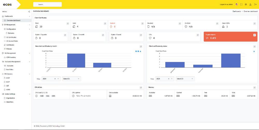Der deutsche IT-Security-Hersteller ECOS Technology zeigt auf der Embedded World 2024 (Halle/Stand 5.370) erstmals die neue Version der ECOS TrustManagementAppliance. Die PKI- und Key-Management-Lösung bietet alle Funktionen für das Lifecycle-Management von Zertifikaten. Durch eine komplett überarbeitete und neu gestaltete Benutzeroberfläche wird die Bedienung deutlich intuitiver und einfacher. Geführte Dialoge und komfortable Wizards erleichtern beispielsweise die Erstellung und Verwaltung von Zertifikaten. Dies kommt insbesondere Administratoren zugute, die auf die in der Regel im Hintergrund laufende Plattform nur gelegentlich zugreifen müssen. Weitere Neuerungen umfassen zusätzliche Programmierschnittstellen für die Anbindung von Drittsystemen, ein Self-Service-Portal für Benutzer sowie erweiterte Möglichkeiten für die Anbindung an externe CAs (Certificate Authorities / Zertifizierungsstellen). Aktuell befindet sich die Lösung darüber hinaus im Zulassungsprozess beim Bundesamt für Sicherheit in der Informationstechnik (BSI) für die Nutzung mit Daten der Geheimhaltungsstufe VS-NfD.