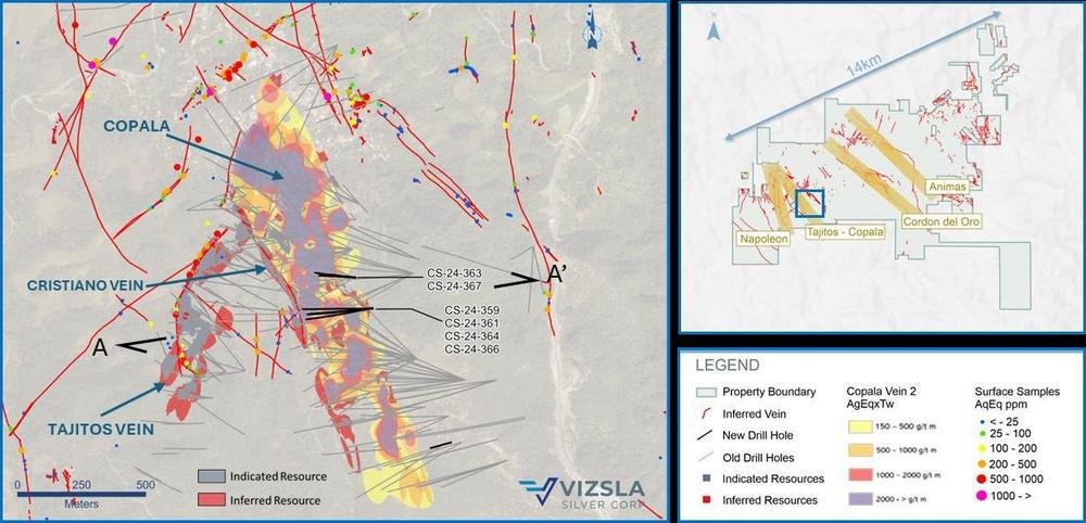 - CS-24- 366 ergab 398 Gramm pro Tonne (g/t) Silberäquivalent (AgEq) über 7,00 Meter wahre Breite (mTW) (1.898 g/t Silber und 9,51 g/t Gold)