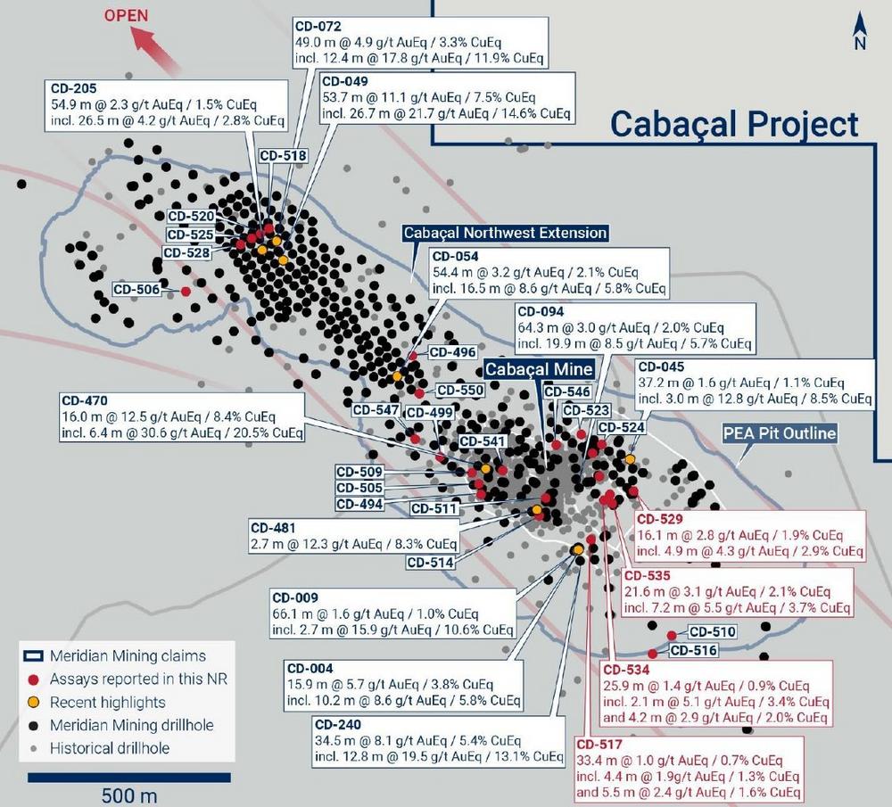 – Meridian meldet weitere breite, oberflächliche Kupfer-, Gold- und Silberergebnisse aus der Lagerstätte Cabaçal;