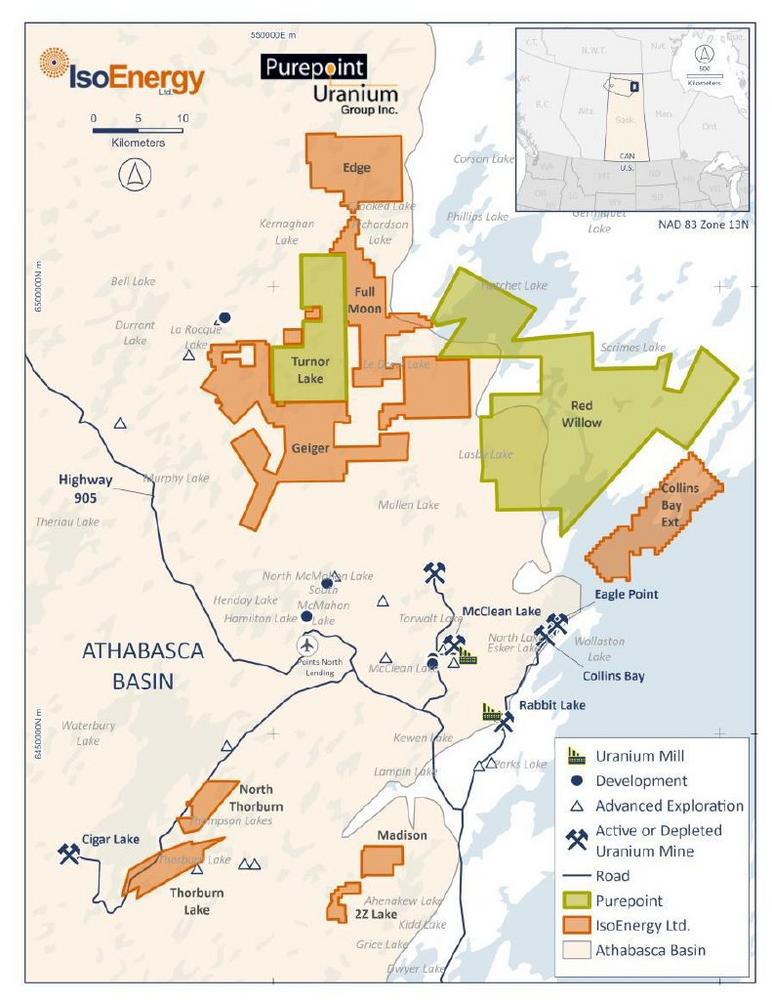 Chris Frostad, Präsident und CEO von Purepoint, fügte hinzu: "Mit diesem Joint Venture werden die meisten der bedeutendsten Projekte von Purepoint nun im Rahmen von Partnerschaften mit einigen der stärksten Akteure des Uransektors vorangetrieben. Diese Zusammenarbeit unterstreicht das Vertrauen unserer Partner, darunter Cameco, Orano, Foran Mining und nun auch IsoEnergy, in das Potenzial dieser Projekte und festigt Purepoints Position an der Spitze der Uranexploration im Athabasca-Becken weiter. Indem wir unsere Kräfte bündeln und unsere Ressourcen zusammenlegen, beschleunigen wir unsere Explorationsbemühungen und schaffen die Voraussetzungen für potenzielle große Entdeckungen, die die wachsende Nachfrage nach sauberer Energie decken können. Wir freuen uns darauf, die technischen und finanziellen Stärken unserer Partner zu nutzen, während wir diese Projekte in Distriktgröße weiter betreiben und zum Erfolg führen."