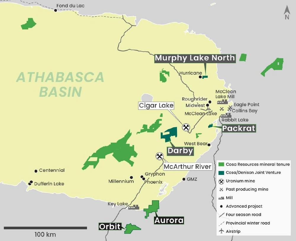 Im November 2024 meldete das Unternehmen eine transformative strategische Zusammenarbeit mit Denison Mines, die Cosa nach ihrem Abschluss den Zugang zu mehreren weiteren vielversprechenden Projekten im östlichen Athabasca-Gebiet sichern und Denison Mines die Möglichkeit bieten wird, das Potenzial von Cosa für Explorationserfolge und eine Pipeline mit potenziell ISR-fähigen Uranlagerstätten zu nutzen. Die Arbeitspläne für 2025 werden derzeit entwickelt.