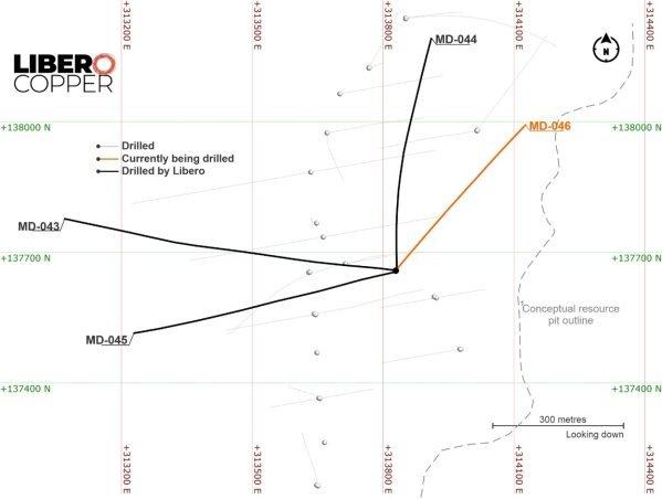 – Basierend auf den Ergebnissen der Bohrlöcher MD-043 (siehe Pressemitteilung vom 26. April 2022), MD-044 (siehe Pressemitteilung vom 6. Januar 2025) und MD-045 (siehe Pressemitteilung vom 26. Februar 2025) wurde MD-046 strategisch als Step-out-Bohrloch konzipiert, um die Mineralisierung jenseits der zuvor bebohrten Gebiete zu erproben. Dieses Bohrloch ist Teil des laufenden Ressourcenerweiterungsprogramms von Libero Copper bei der Lagerstätte Mocoa.