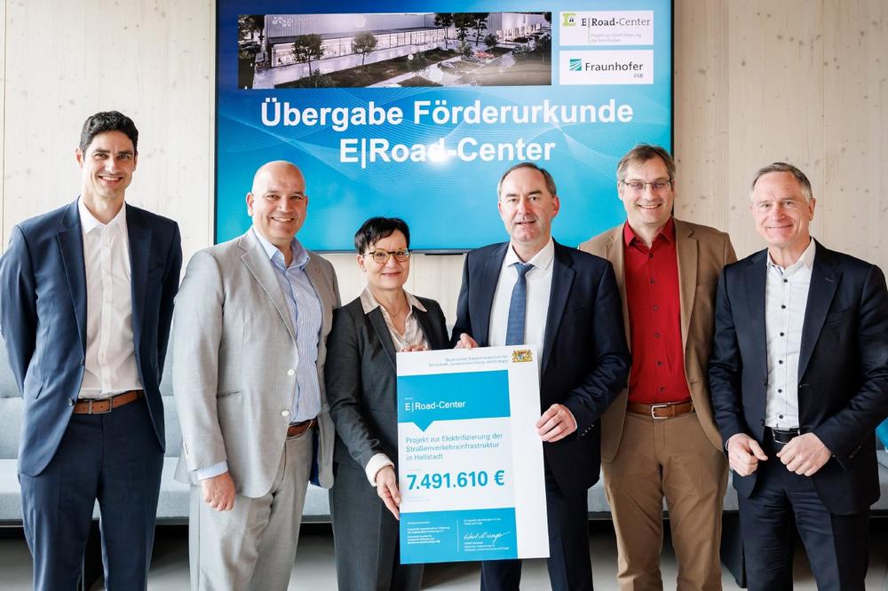 Der bayerische Wirtschaftsminister Hubert Aiwanger hat am 10. April 2025 das neue Technologiezentrum des Fraunhofer IISB zur Erforschung kontaktloser Energieübertragung für elektrische Fahrzeuge eröffnet und die Förderurkunde übergeben. Das E|Road-Center ist ein weiterer Baustein im Hightech-Spektrum des Cleantech Innovation Parks in Hallstadt bei Bamberg.