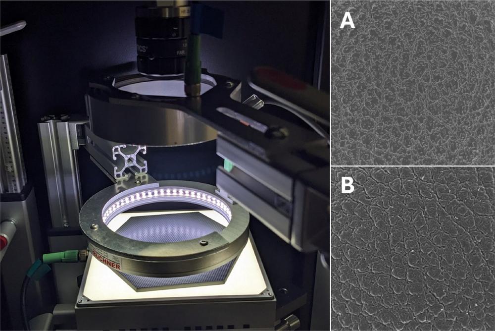 Die Arbeitsgruppe Spektroskopie der SKZ KFE gGmbH betreibt seit Anfang 2025 ein neues Kamerainspektionssystem, das eine Vielzahl variabler Beleuchtungssituationen ermöglicht – auch in Kombination mehrerer Lichtarten. Die groß dimensionierte Messkammer, die primär der Abschirmung von Fremdlicht dient, beherbergt eine hochauflösende Monochromkamera. In Verbindung mit einer Auswahl hochwertiger, schnell wechselbarer Objektive lassen sich kleinste Strukturen unterhalb von 50 µm bei gleichzeitig großem Sichtfeld (ca. 100 x 100 mm²) detailgenau erfassen und analysieren.
