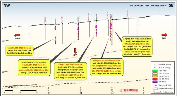 St George Mining Limited (ASX: SGQ) („St George“ oder „das Unternehmen“) freut sich bekannt zu geben, dass zusätzliche hochgradige Seltene Erden- und Niobium-Mineralisierungen durch die neuesten Analysen aus Bohrungen im zu 100 % unternehmenseigenen Araxá-Projekt in Minas Gerais, Brasilien, bestätigt wurden.