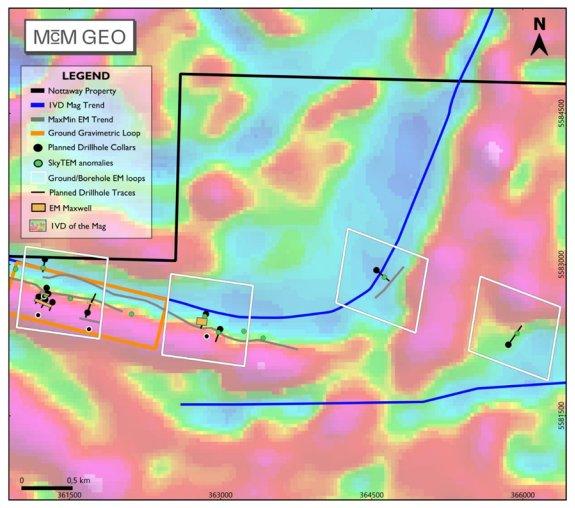 Anhand der bisherigen Exploration konnte bestätigt werden, dass das Konzessionsgebiet Nottaway mehrere Anzeichen für ein Mineralisierungsmilieu vom VMS-Typ aufweist. Untermauert wird dies durch Bohrabschnitte massiver Sulfidhorizonte und ausgeprägten unerprobten geophysikalischen Leitern.