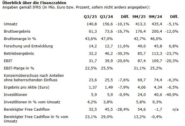 Weitere Informationen zum dritten Quartal 2025 und den ersten neun Monaten 2025 der Elmos Semiconductor SE finden Sie in der Quartalsmitteilung Q3 2025. Diese ist unter www.elmos.com verfügbar. Am 4. November 2025 wird Elmos um 10:00 Uhr (MEZ) eine Telefonkonferenz (in englischer Sprache) für Analysten und Investoren durchführen. Die Telefonkonferenz wird später auf der Webseite abrufbar sein.
